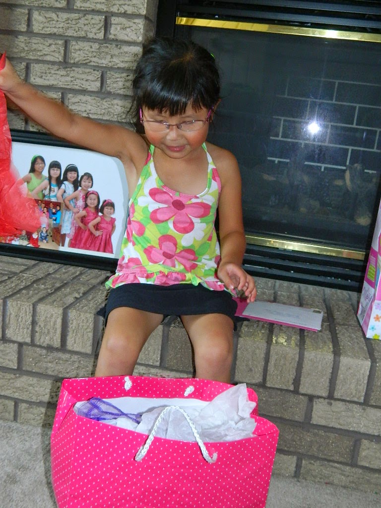 She got several cards with money to spend! She cannot wait for the shopping trip!